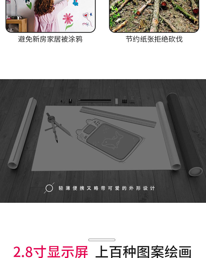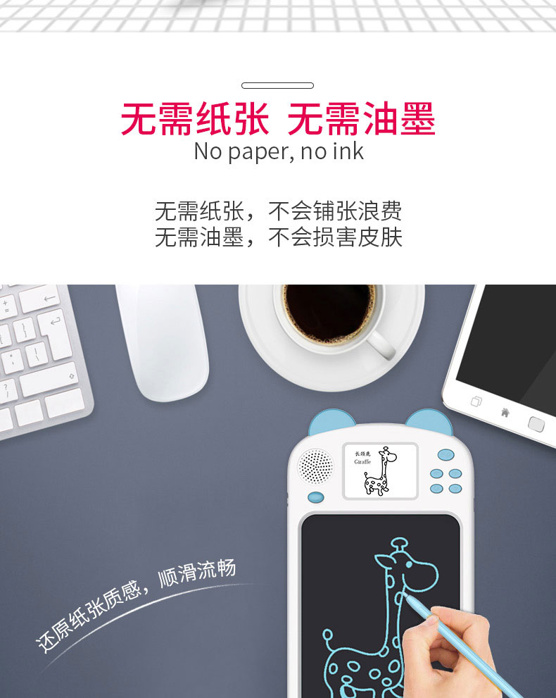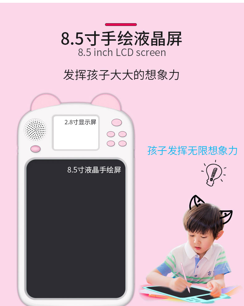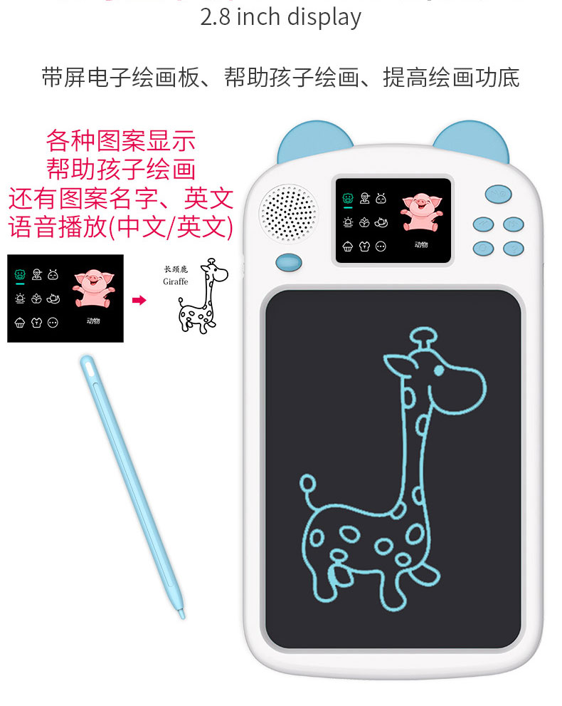 泥娃娃儿童绘画板便携手写板光能电子小黑板儿童绘画涂鸦画板带液晶显示提示